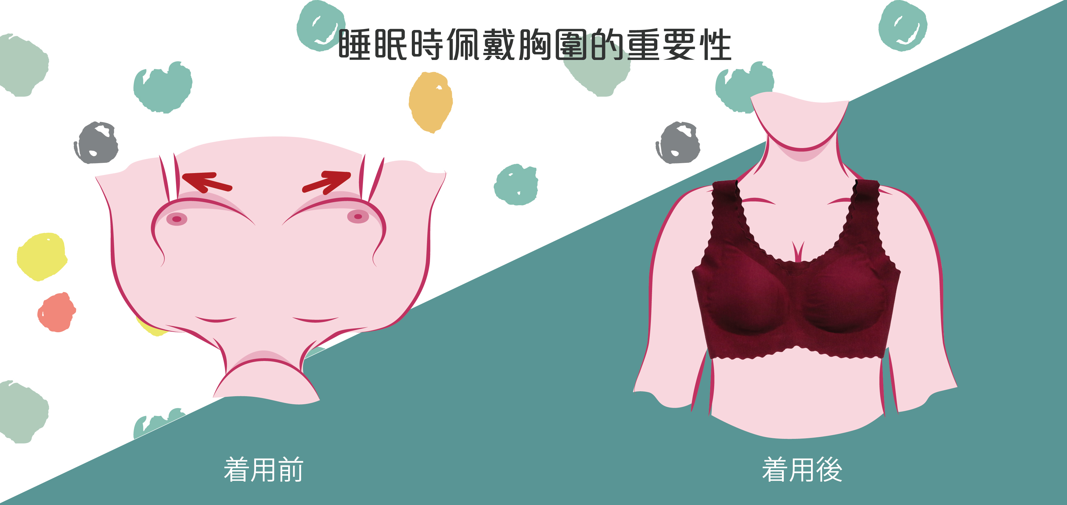 所以女孩們睡覺時,必須偑戴透氣舒適、罩杯適合自己的無鋼圈內衣,讓身體以最自然被包覆的舒適狀態入睡!