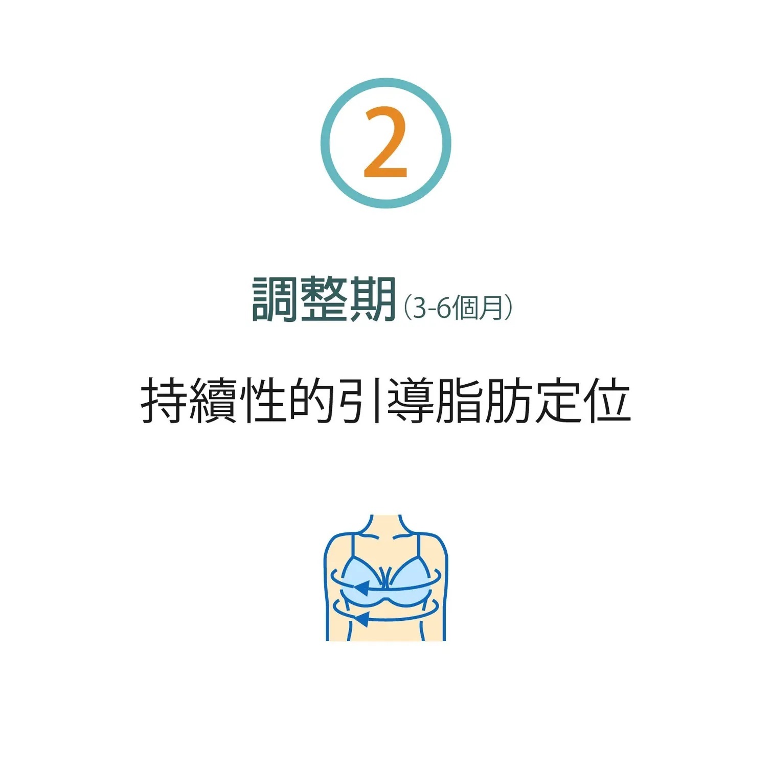 可將副乳脂肪推至胸前, 令胸部集中, 改善胸部線條